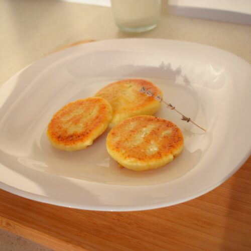 Fluffy cotttage cheese pancakes (“Branzoaice”), a traditional Moldavian breakfast recipe. Easy to make at home and ready in 30 minutes, step by step.